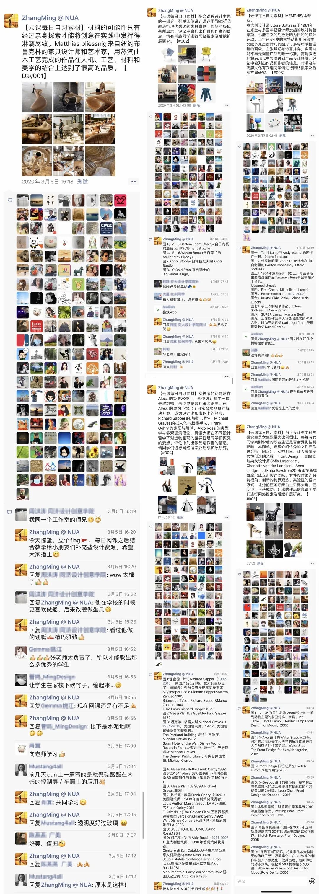 必一运动经理张明教授每周三次通过网络会议及直播方式进行毕业设计和其他本科课程的线上辅导。他所带领的中国造物方式的跨文化研究及现代化转译课题《道物工坊》已经持续进行了十年,今年在疫情的特殊情况下,灵活地运用多种网络工具继续展开教学研究。同时,为了给员工带来更为鲜活精彩的专业知识,帮助员工拓宽专业视野,他每天都会在教学及日常工作之外,再花3~4小时为员工搜集梳理线上教学补充资料,并通过微信朋友圈进行发布,方便员工进行网络搜索和拓展研究。通过一系列线上教学方式,使员工在疫情期间能够做到有效学习、合理互动,多样的教学方式和生动的教学方法极大地提升了员工们的学习热情和积极性,取得了良好的教学成果。