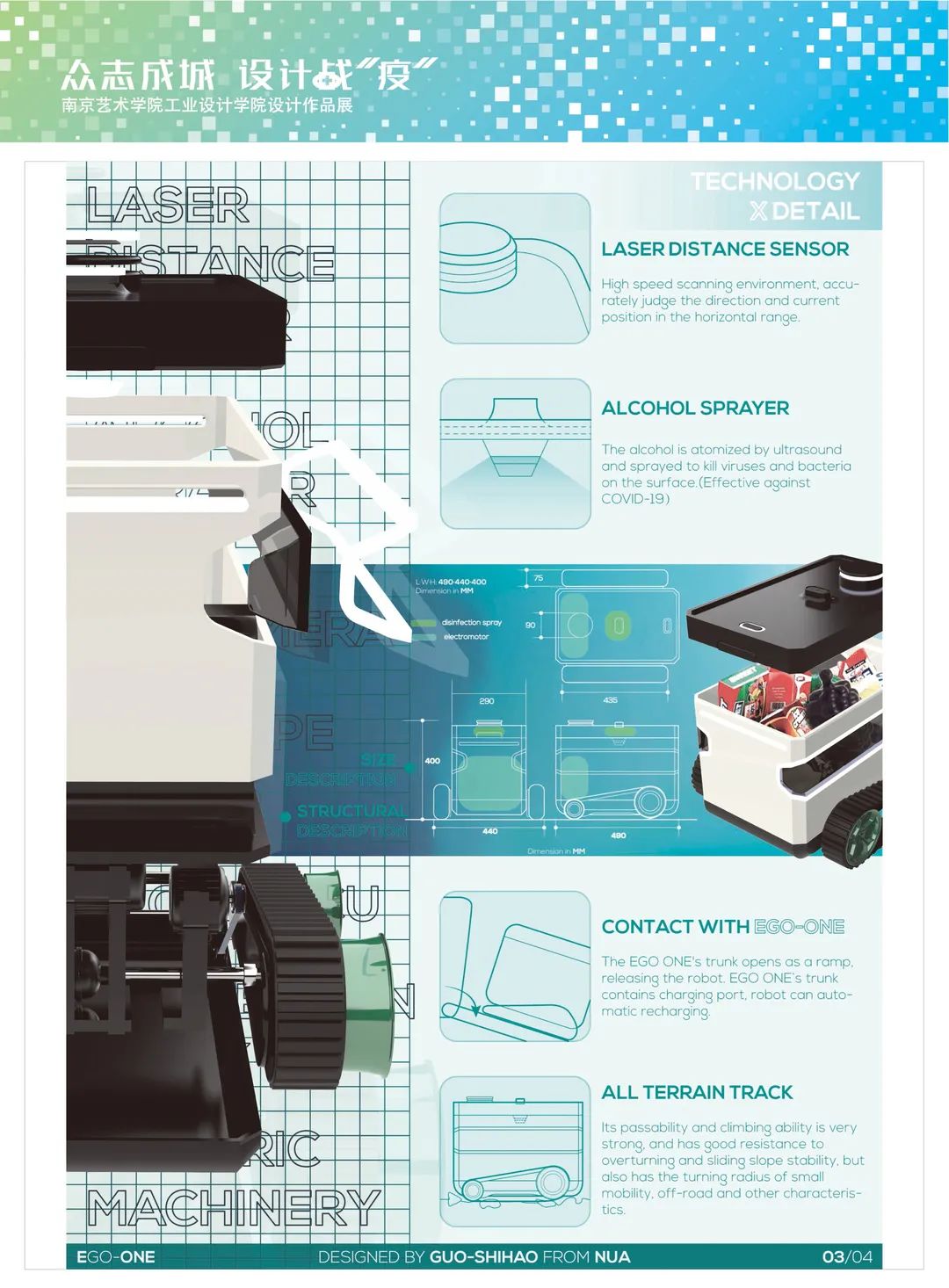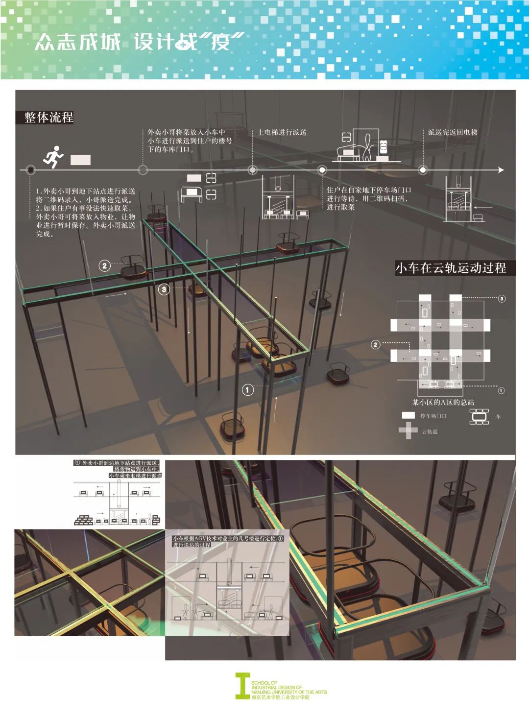 由于三年级的员工已经具有较为熟练的软件操作以及原创设计能力,因此在这次设计实践课程中,郑昕怡老师提出了《“重建”方舱医院》的设计主题,以分组的方式,从外部和内部系统重构和整合了未来概念方舱医院包括公共服务系统、公共卫浴系统、消毒系统以及运送人员和物资系统等10个子系统。课程从概念设计的角度出发,契合这门课程教学目标的同时,也能够贴合抗疫的主题。