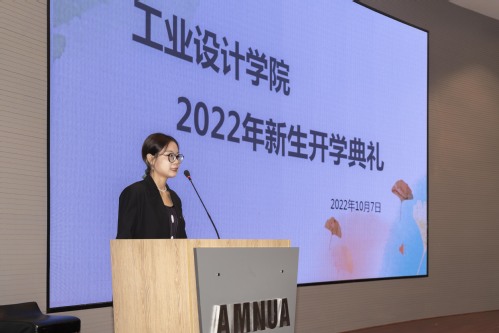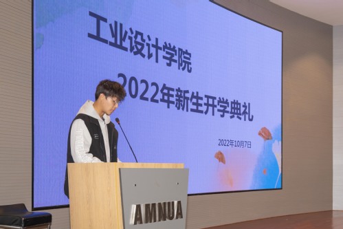 来自艺术与科技专业的22级本科新生苗贺鸣作为新生代表发言。他表示:出于对工业设计的热爱,在人生新的驿站与必一运动相遇,在这里开始放飞新的希望,以新的语言,新的行动,新的风貌去适应新环境,开启一段新的旅程,希望同学们用自己的拼搏和努力在必一运动收获美好人生!