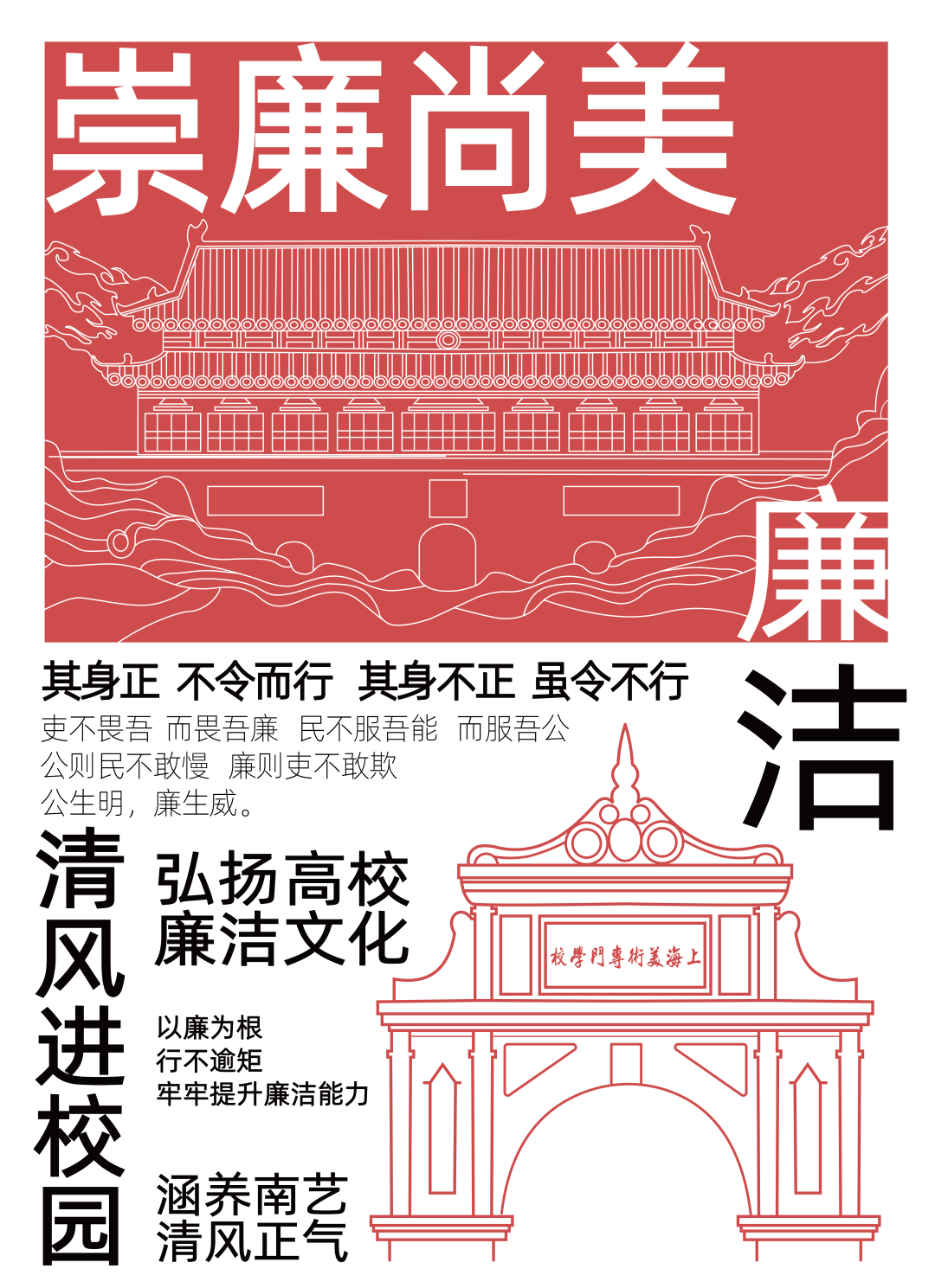 此次活动中,同学们以海报为载体,诠释了自己心目中对“廉”的认识,在创作中进一步领悟“廉”的深意,树立正确的人生价值观,宣扬廉洁文化,弘扬南艺清风正气,营造了良好的校园文化氛围。希望每位同学都能以饱满的热情、昂扬的斗志、务实清廉的作风,自觉为新时代党的使命不懈奋斗。