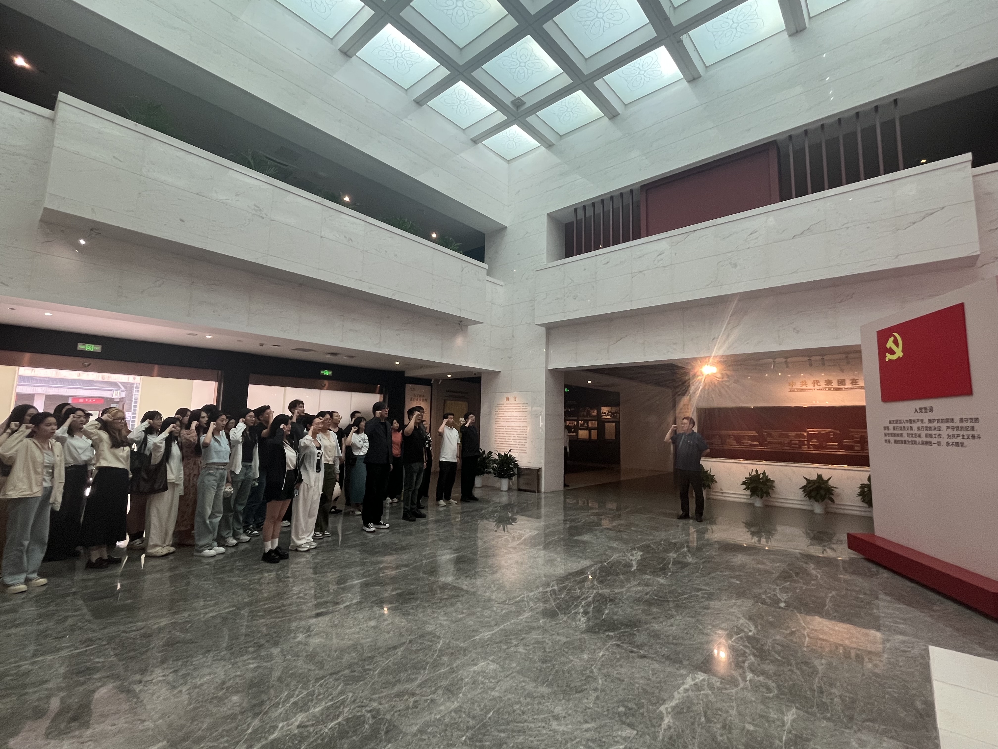 全体党员满怀敬意瞻仰了周恩来铜像,重温了入党誓词,深刻感悟革命先烈的崇高风范,坚定自己的入党初心和理想信念。在讲解员的带领下,党员们井然有序的参观了梅园新村纪念馆的各个展厅,丰富的历史照片和珍贵文物,生动地再现了老一辈无产阶级革命家们崇高的革命精神和深厚的爱国情操,大家真切感受到中国共产党人不忘初心、牢记使命、坚守奋斗的精神风貌。