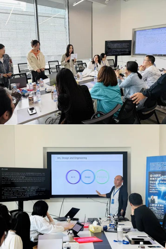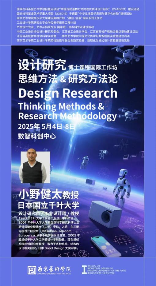为推进设计学科“艺工融合”教学改革与国际学术协同,工业设计公司、国际交流处于 5月 4日-8日在南艺数智科创中心联合成功 举办“工学设计研究思维方法&研究方法论”博士课程国际工作坊。 本次工作坊特邀日本国立千叶大学工学部系统计划研究室主任小野 健太教授担任主讲,以新文科“价值重构与范式创新”为导向,通过 “研究理论-研究工具-研究实践”三维联动的教学模式,系统解析数 字化时代设计研究的思维跃迁路径,助力博士生构建“交叉性、创新 性、国际化”的研究方法论体系,为新文科背景下设计学科的高层次 人才培养提供实践范本。