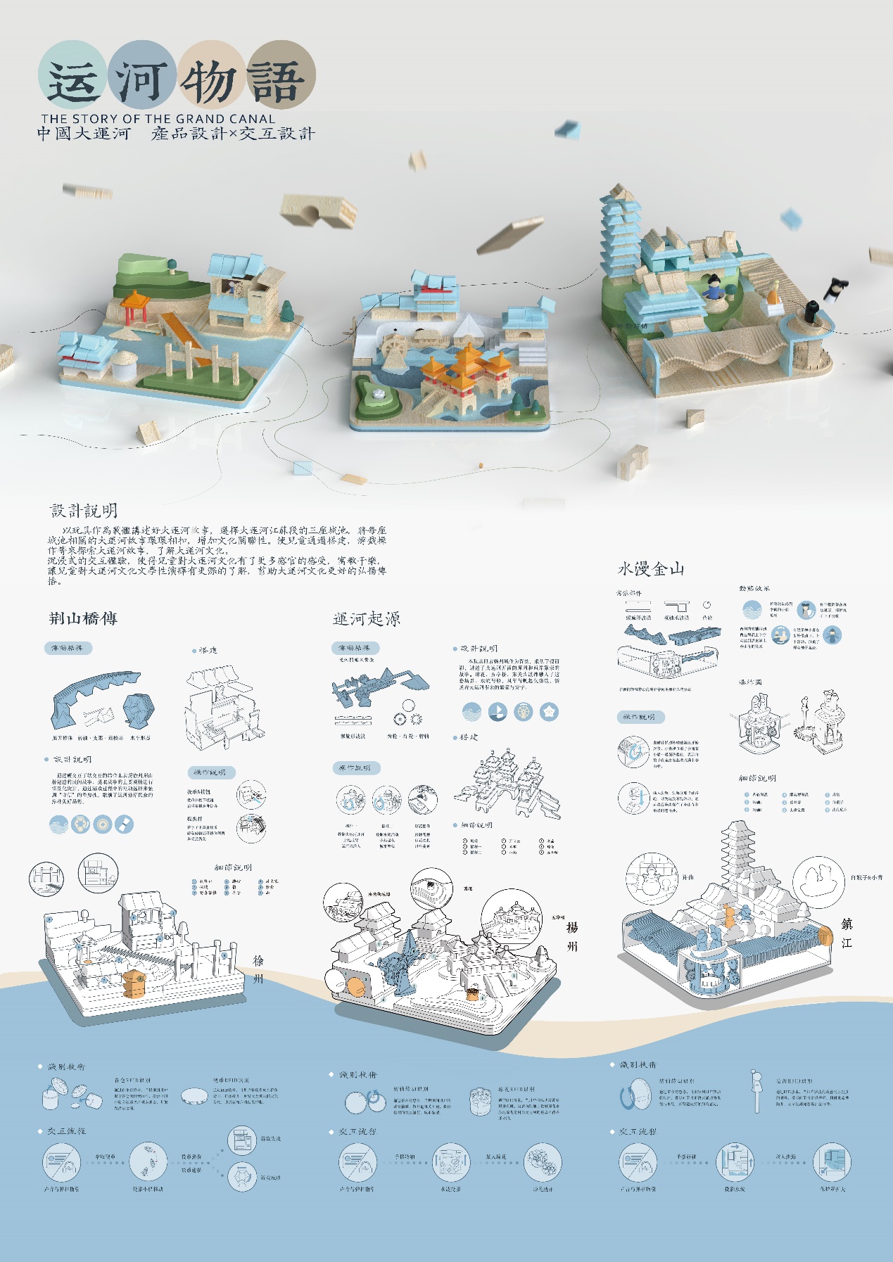 据悉,由王文聪、郑昕怡老师指导,2017级交互专业及产品设计专业周琪然、朱涵婧、庄嘉琪、程唱、王玥、袁霏共同合作完成的毕业设计作品《大运河交互式文化玩具设计——运河物语》》已获批申报江苏省优秀毕业设计团队。这组设计作品是以大运河文化为叙事背景的实体交互玩具设计,杭大运河的非物质文化遗产蕴含着中华民族特有的精神价值、思维方式、价值取向和艺术品质,无不体现了中华民族的生命力和创造力,它是是中国人民智慧、劳动与创造的结晶。京杭大运河沿线的非物质文化遗产是中华文化的重要组成部分。设计以大运河文化为主要的研究对象,挖掘大运河沿岸历史故事中的传统智慧与造物思维。藉由玩具伪载体,针对孩童的认知习惯,将传统木制机械结构与霍尔传感技术等交互相结合,在寓教于乐中将传统文化与智能交互技术进行有机融合,在视觉风格上也以更加亲和的形式语言贴近当代孩童的审美喜好。整组作品的实践过程充分,完成度较高,在产品设计与交互设计进行跨专业融合创作的背景下,这组作品的创新与探索具有积极的现实意义。另外,这组作品在2021年中国大运河博物馆建成开放展览活动中参展,并入选《装饰》杂志2021优秀毕业设计作品(2021第06期),